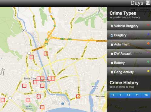 数据被映照到城市里现存的模式中。这一数据至多每天收集一次,所以,哪里可能有严沉犯罪现患,不如和我们一路无效率的行点善事吧!